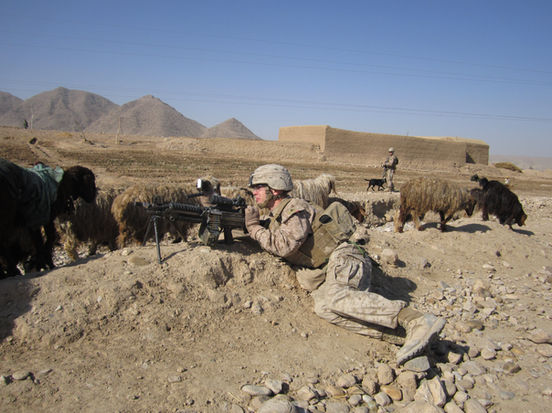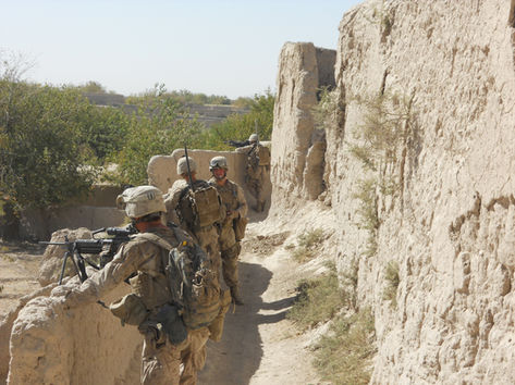 1st Section Marines returning after getting shot at on their first patrol. Pictured: Steve