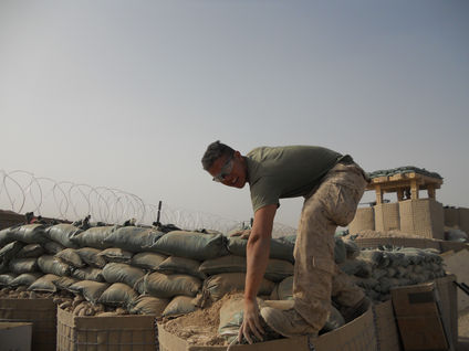 Marine using the shitter, which was an ammo can. His face has been cropped out with an AI face